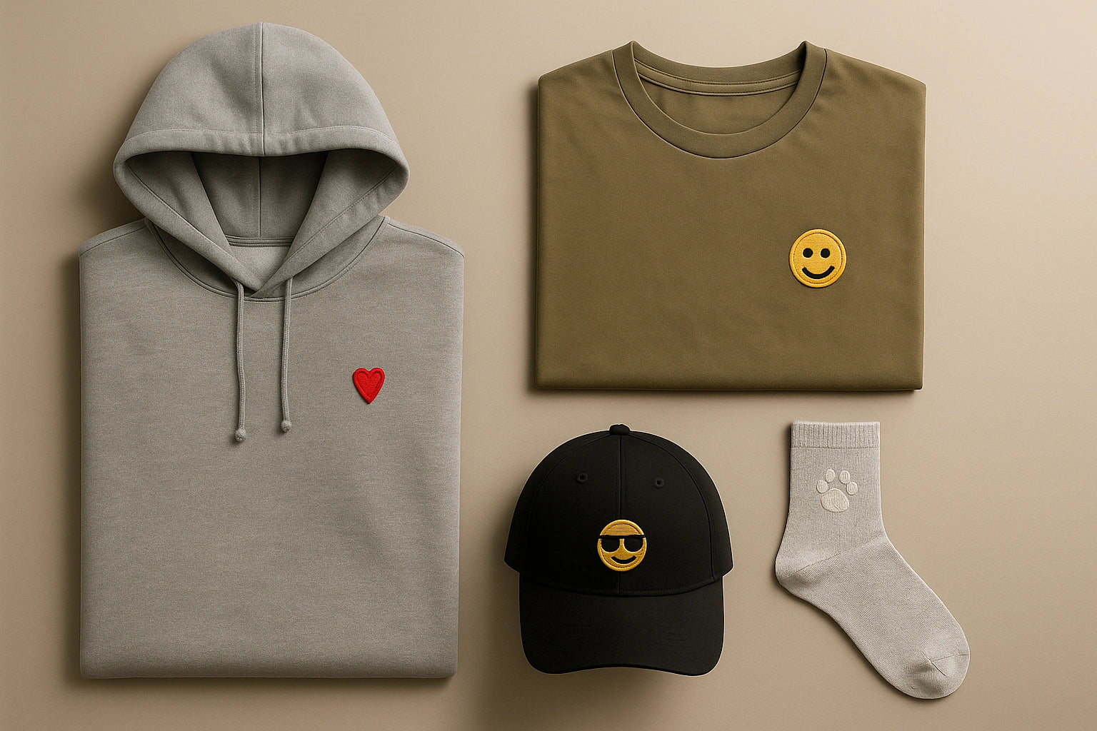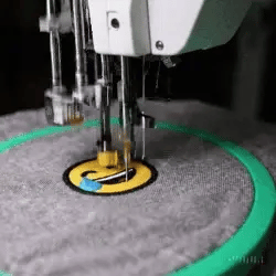 Feine, langlebige Stickerei auf ausgewählten Textilien; formstabil, waschbeständig